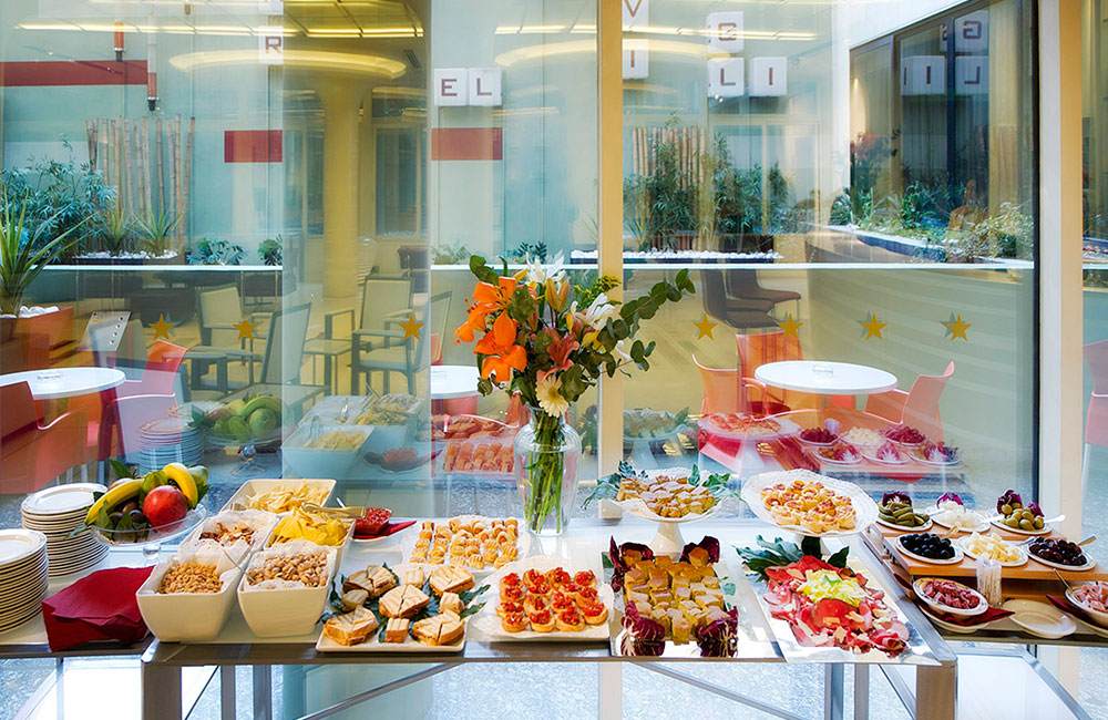 Il nostro buffet delle colazioni è variegato e comprende prodotti dolci e salati tra cui croissants caldi e torte fresche preparate dal nostro pasticciere, cereali, affettati di salumi e formaggi, frutta fresca e prelibati centrifugati di verdura fresca e frutta; disponibile, inoltre, un’ampia scelta di prodotti vegani e senza glutine. E’ possibile fare colazione nell’ampio giardino interno adiacente alla sala colazioni.